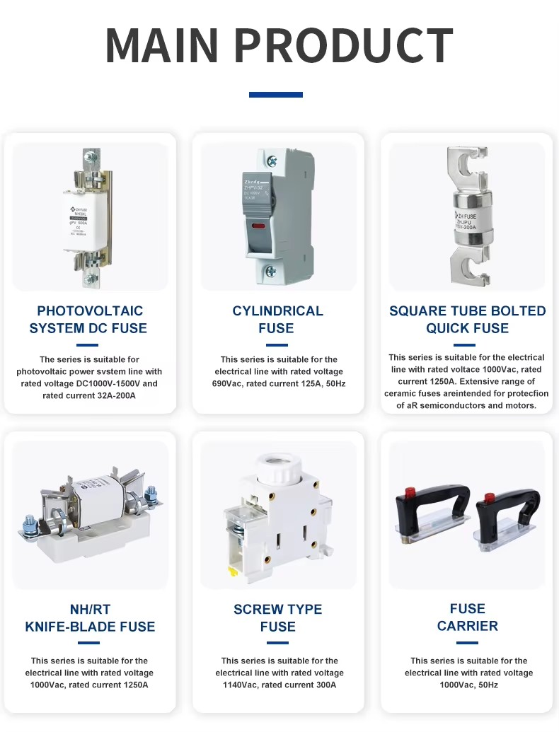 ZHPV-125 1000V DC Basis sekering umumnya digunakan untuk perlindungan sirkuit dalam aplikasi industri dan komersial.